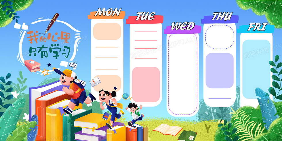 本作品内容为炫彩可爱课程表合成色块背景, 格式为 psd, 大小65 MB, 图片尺寸为4724 x 2362, 作品中背景图片无需修改, 源文件无水印,可以直接使用, 欢迎使用熊猫办公。 如认为平台内容涉嫌侵权,可通过邮件:tousu@tukuppt.com提出书面通知,我们将及时处理。