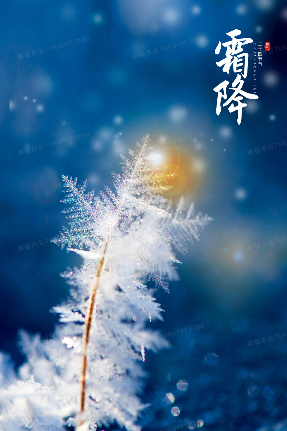 本作品内容为唯美摄影合成霜降简约节气背景, 格式为 psd, 大小63 MB, 图片尺寸为2362 x 3543, 作品中背景图片无需修改, 源文件无水印,可以直接使用, 欢迎使用熊猫办公。 如认为平台内容涉嫌侵权,可通过邮件:tousu@tukuppt.com提出书面通知,我们将及时处理。
