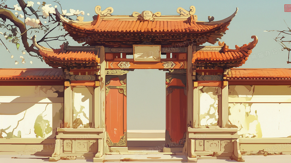 本作品内容为中国古建筑豪宅大院大门插画, 格式为 jpg, 大小3 MB, 图片尺寸为2912 x 1632, 源文件无水印, 欢迎使用熊猫办公。 如认为平台内容涉嫌侵权,可通过邮件:tousu@tukuppt.com提出书面通知,我们将及时处理。