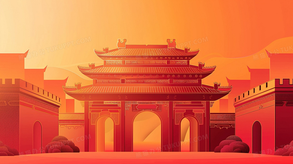本作品内容为唯美中式门楼建筑插画, 格式为 jpg, 大小2 MB, 图片尺寸为2912 x 1632, 源文件无水印, 欢迎使用熊猫办公。 如认为平台内容涉嫌侵权,可通过邮件:tousu@tukuppt.com提出书面通知,我们将及时处理。