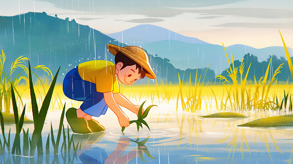 本作品内容为雨天农田小男孩种水稻农业插画, 格式为 jpg, 大小4 MB, 图片尺寸为2912 x 1632, 源文件无水印, 欢迎使用熊猫办公。 如认为平台内容涉嫌侵权,可通过邮件:tousu@tukuppt.com提出书面通知,我们将及时处理。