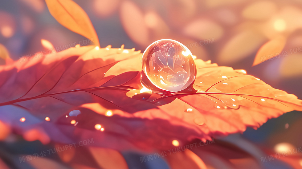 本作品内容为秋意浓秋季黄叶上的小水珠背景, 格式为 jpg, 大小2 MB, 图片尺寸为2912 x 1632, 作品中背景图片无需修改, 源文件无水印,可以直接使用, 欢迎使用熊猫办公。 如认为平台内容涉嫌侵权,可通过邮件:tousu@tukuppt.com提出书面通知,我们将及时处理。