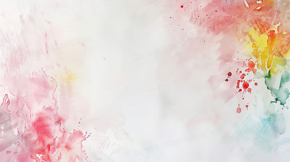 本作品内容为彩色水彩晕染背景, 格式为 jpg, 大小2 MB, 图片尺寸为2912 x 1632, 作品中背景图片无需修改, 源文件无水印,可以直接使用, 欢迎使用熊猫办公。 如认为平台内容涉嫌侵权,可通过邮件:tousu@tukuppt.com提出书面通知,我们将及时处理。