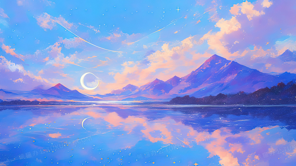本作品内容为唯美梦幻紫色夜空明月景色插画, 格式为 jpg, 大小3 MB, 图片尺寸为2912 x 1632, 源文件无水印, 欢迎使用熊猫办公。 如认为平台内容涉嫌侵权,可通过邮件:tousu@tukuppt.com提出书面通知,我们将及时处理。