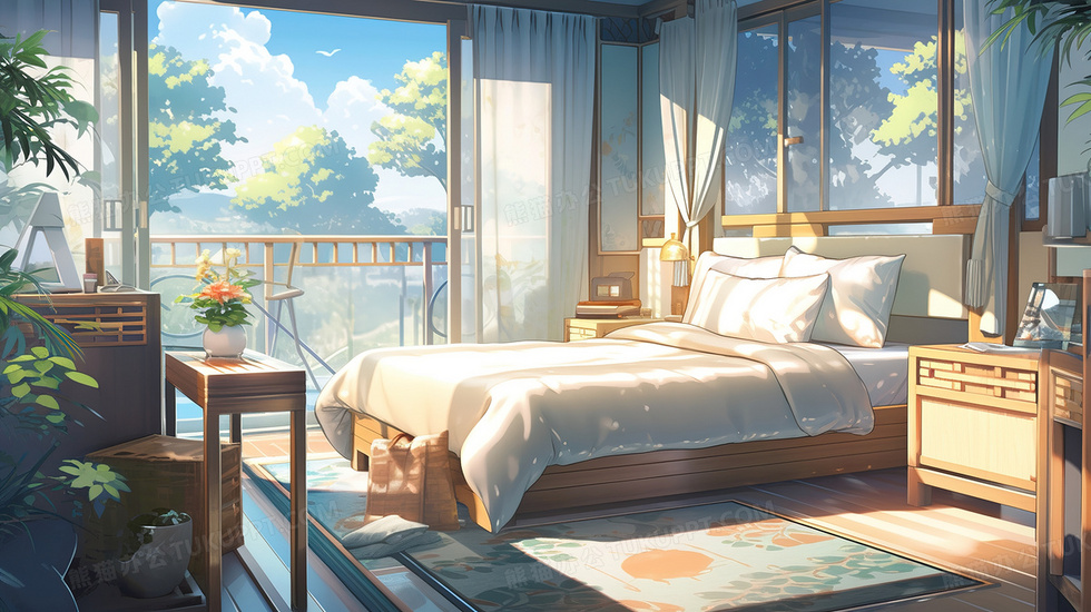 本作品内容为卡通唯美家居卧室床生活场景插画, 格式为 jpg, 大小3 MB, 图片尺寸为2912 x 1632, 源文件无水印, 欢迎使用熊猫办公。 如认为平台内容涉嫌侵权,可通过邮件:tousu@tukuppt.com提出书面通知,我们将及时处理。