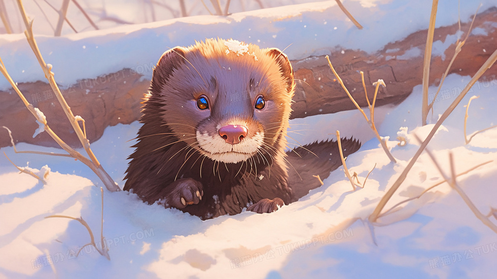 本作品内容为雪地里的动物水獭插画, 格式为 jpg, 大小3 MB, 图片尺寸为2912 x 1632, 源文件无水印, 欢迎使用熊猫办公。 如认为平台内容涉嫌侵权,可通过邮件:tousu@tukuppt.com提出书面通知,我们将及时处理。
