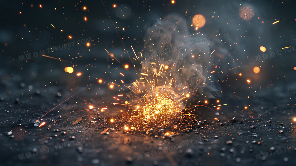 本作品内容为简约深色火焰火花背景, 格式为 jpg, 大小3 MB, 图片尺寸为2912 x 1632, 作品中背景图片无需修改, 源文件无水印,可以直接使用, 欢迎使用熊猫办公。 如认为平台内容涉嫌侵权,可通过邮件:tousu@tukuppt.com提出书面通知,我们将及时处理。