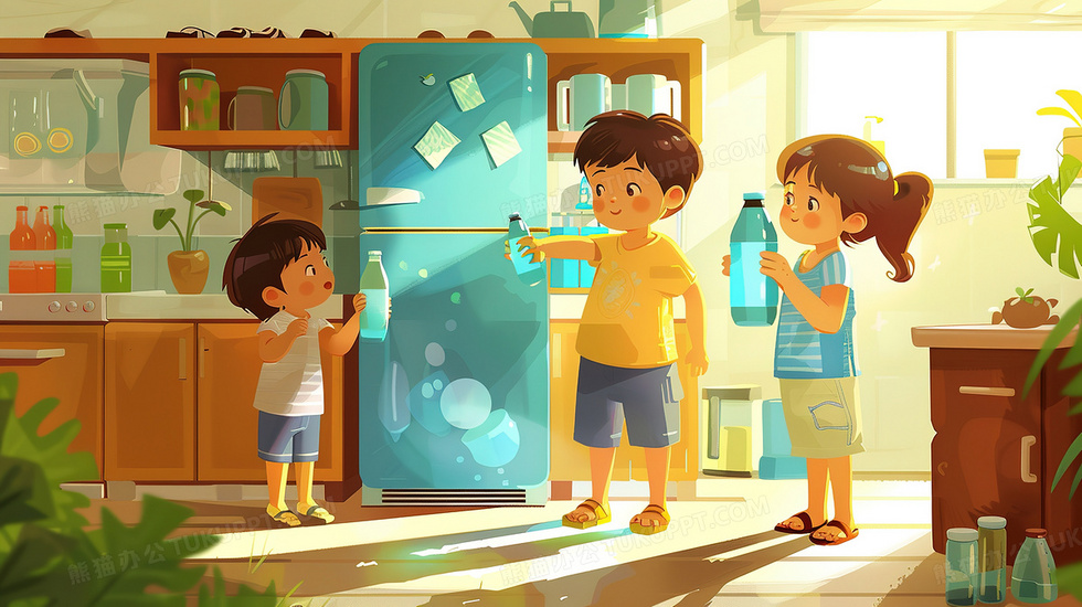 本作品内容为炎热夏季冰箱边喝冷饮的孩子插画, 格式为 jpg, 大小3 MB, 图片尺寸为2912 x 1632, 源文件无水印, 欢迎使用熊猫办公。 如认为平台内容涉嫌侵权,可通过邮件:tousu@tukuppt.com提出书面通知,我们将及时处理。