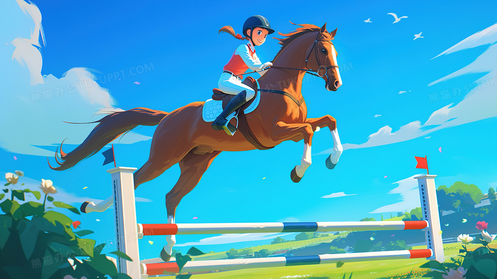 本作品内容为赛场马术比赛的女孩子插画, 格式为 jpg, 大小3 MB, 图片尺寸为2912 x 1632, 源文件无水印, 欢迎使用熊猫办公。 如认为平台内容涉嫌侵权,可通过邮件:tousu@tukuppt.com提出书面通知,我们将及时处理。