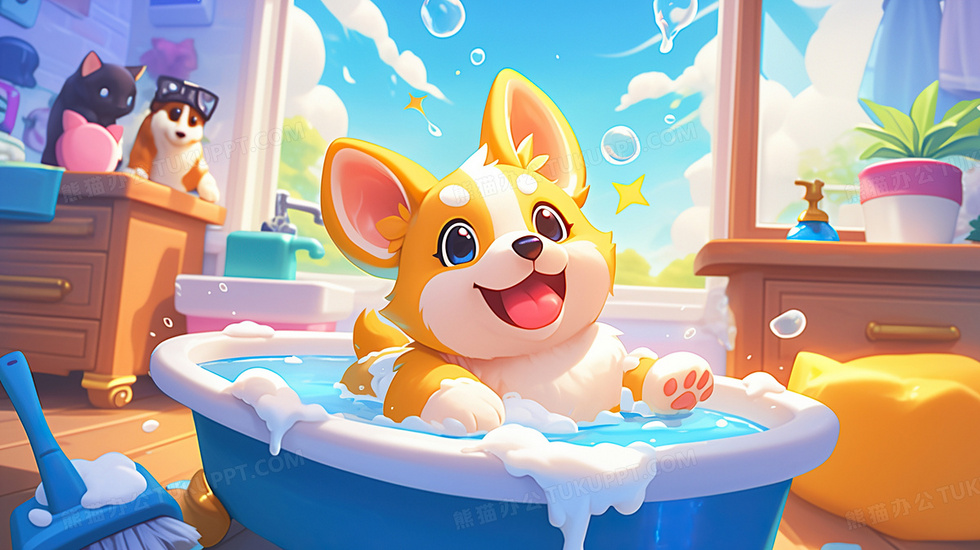 本作品内容为小狗在浴室洗澡宠物插画, 格式为 jpg, 大小3 MB, 图片尺寸为2912 x 1632, 源文件无水印, 欢迎使用熊猫办公。 如认为平台内容涉嫌侵权,可通过邮件:tousu@tukuppt.com提出书面通知,我们将及时处理。