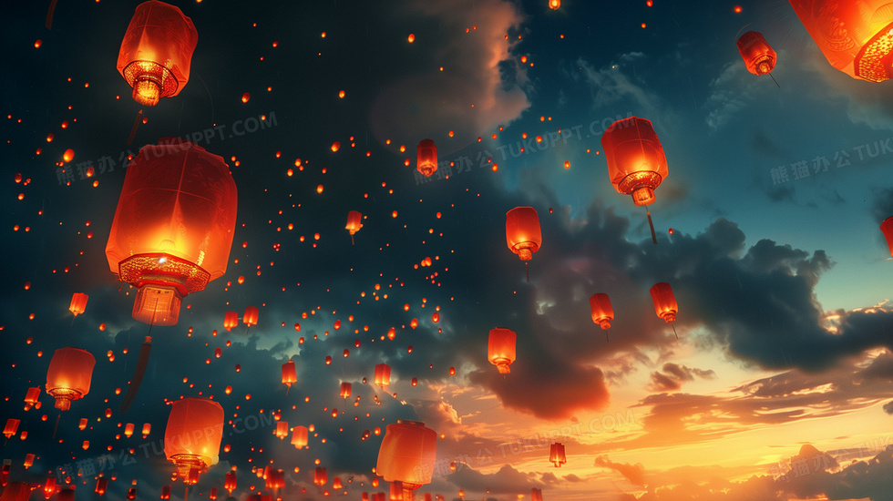 本作品内容为中元节放天灯背景, 格式为 jpg, 大小7 MB, 图片尺寸为2912 x 1632, 作品中背景图片无需修改, 源文件无水印,可以直接使用, 欢迎使用熊猫办公。 如认为平台内容涉嫌侵权,可通过邮件:tousu@tukuppt.com提出书面通知,我们将及时处理。