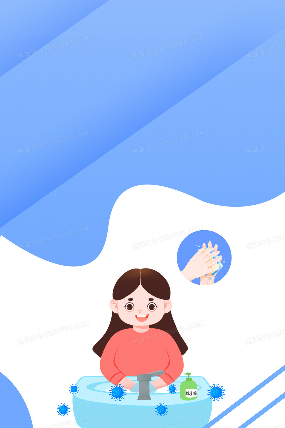 本作品内容为蓝色简约洗手背景, 格式为 psd, 大小30 MB, 图片尺寸为3543 x 5315, 作品中背景图片无需修改, 源文件无水印,可以直接使用, 欢迎使用熊猫办公。 如认为平台内容涉嫌侵权,可通过邮件:tousu@tukuppt.com提出书面通知,我们将及时处理。