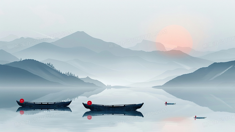 本作品内容为中国风山水水墨船风景背景, 格式为 jpg, 大小3 MB, 图片尺寸为2912 x 1632, 作品中背景图片无需修改, 源文件无水印,可以直接使用, 欢迎使用熊猫办公。 如认为平台内容涉嫌侵权,可通过邮件:tousu@tukuppt.com提出书面通知,我们将及时处理。