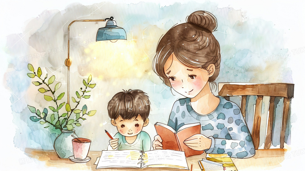 本作品内容为妈妈辅导小男孩写作业插画, 格式为 jpg, 大小3 MB, 图片尺寸为2912 x 1632, 源文件无水印, 欢迎使用熊猫办公。 如认为平台内容涉嫌侵权,可通过邮件:tousu@tukuppt.com提出书面通知,我们将及时处理。