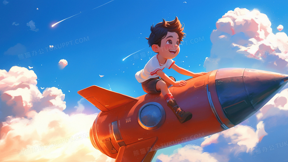 本作品内容为云层坐着火箭升空的小男孩插画, 格式为 jpg, 大小3 MB, 图片尺寸为2912 x 1632, 源文件无水印, 欢迎使用熊猫办公。 如认为平台内容涉嫌侵权,可通过邮件:tousu@tukuppt.com提出书面通知,我们将及时处理。