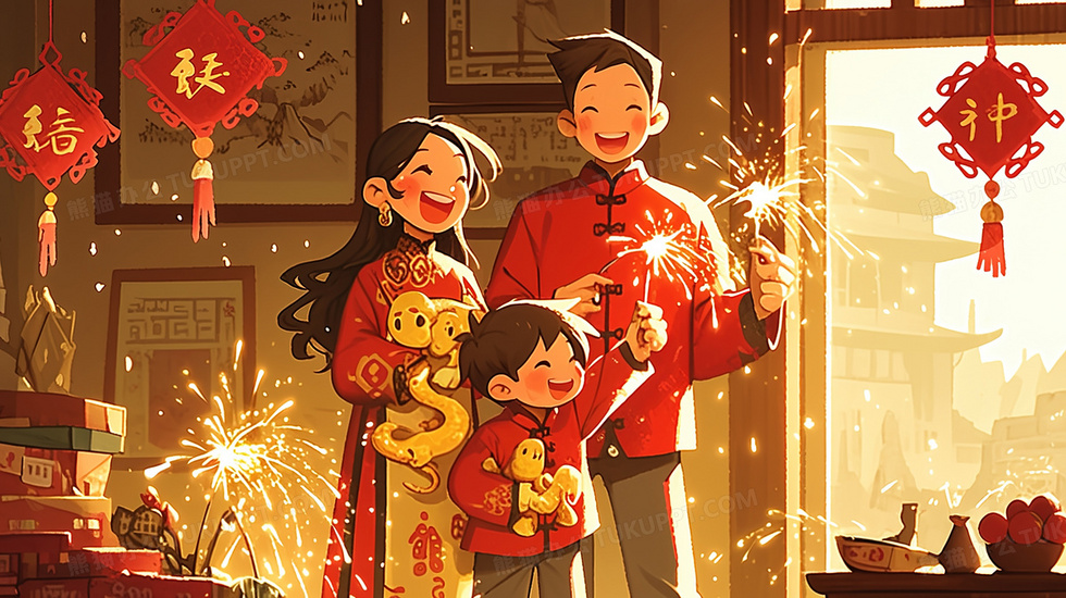 本作品内容为手绘风格一家三口新年团聚新年礼物插画, 格式为 jpg, 大小3 MB, 图片尺寸为2912 x 1632, 源文件无水印, 欢迎使用熊猫办公。 如认为平台内容涉嫌侵权,可通过邮件:tousu@tukuppt.com提出书面通知,我们将及时处理。
