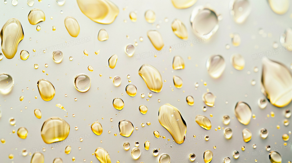 本作品内容为金色水珠水滴纹理背景, 格式为 jpg, 大小2 MB, 图片尺寸为2912 x 1632, 作品中背景图片无需修改, 源文件无水印,可以直接使用, 欢迎使用熊猫办公。 如认为平台内容涉嫌侵权,可通过邮件:tousu@tukuppt.com提出书面通知,我们将及时处理。