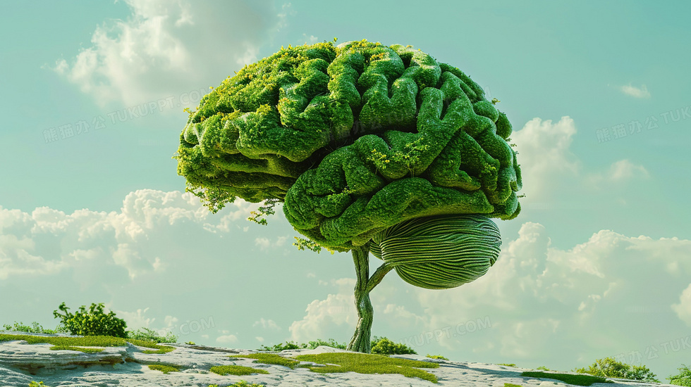 本作品内容为绿色脑部形状的大树插画, 格式为 jpg, 大小3 MB, 图片尺寸为2912 x 1632, 源文件无水印, 欢迎使用熊猫办公。 如认为平台内容涉嫌侵权,可通过邮件:tousu@tukuppt.com提出书面通知,我们将及时处理。