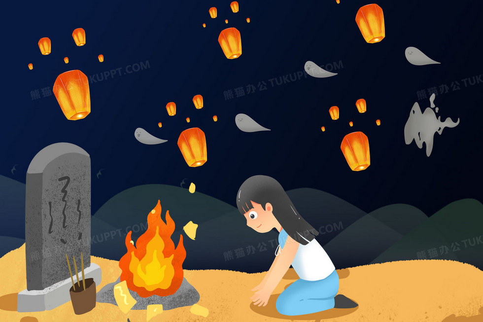 本作品内容为中元节女孩祭拜亲人手绘插画, 格式为 psd, 大小43 MB, 请使用软件PhotoShop(CS6)打开, 源文件无水印, 欢迎使用熊猫办公。 如认为平台内容涉嫌侵权,可通过邮件:tousu@tukuppt.com提出书面通知,我们将及时处理。