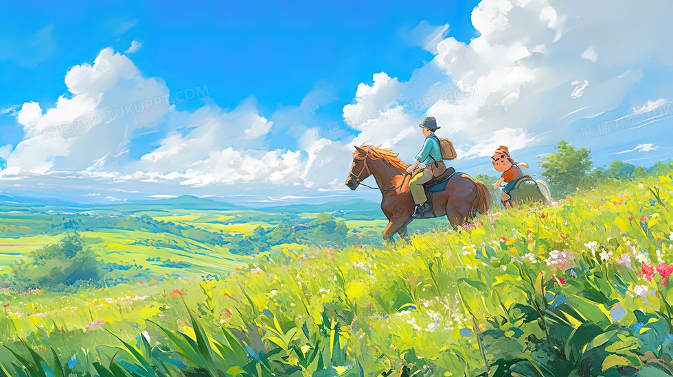 本作品内容为蓝天白云草原骑马的少年插画, 格式为 jpg, 大小4 MB, 图片尺寸为2912 x 1632, 源文件无水印, 欢迎使用熊猫办公。 如认为平台内容涉嫌侵权,可通过邮件:tousu@tukuppt.com提出书面通知,我们将及时处理。
