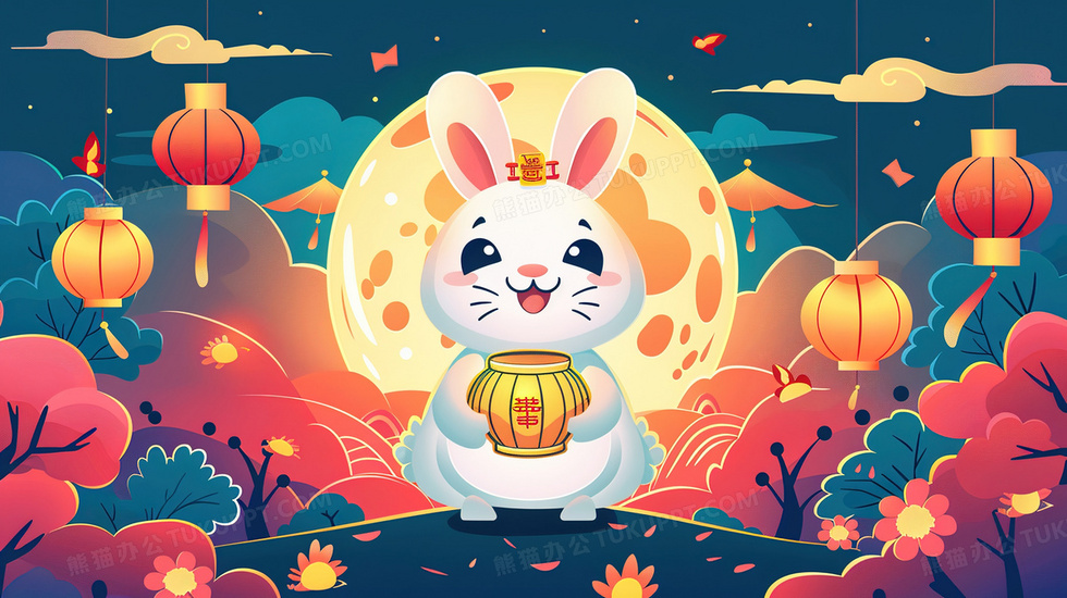 本作品内容为国潮风中秋节玉兔送祝福插画, 格式为 jpg, 大小3 MB, 图片尺寸为2912 x 1632, 源文件无水印, 欢迎使用熊猫办公。 如认为平台内容涉嫌侵权,可通过邮件:tousu@tukuppt.com提出书面通知,我们将及时处理。