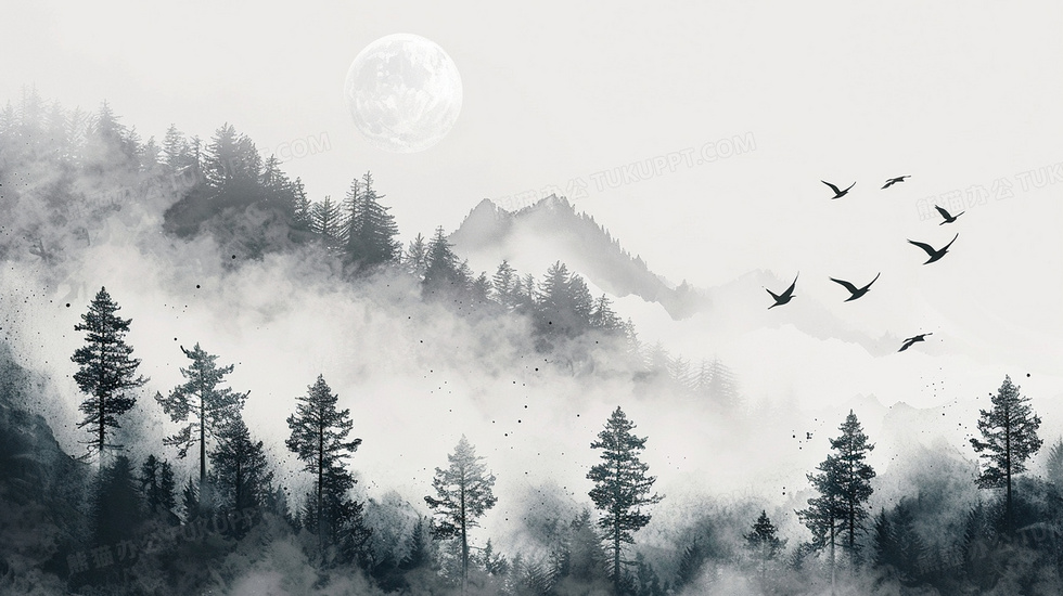 本作品内容为松树山水中国风水墨简约背景, 格式为 jpg, 大小3 MB, 图片尺寸为2912 x 1632, 作品中背景图片无需修改, 源文件无水印,可以直接使用, 欢迎使用熊猫办公。 如认为平台内容涉嫌侵权,可通过邮件:tousu@tukuppt.com提出书面通知,我们将及时处理。