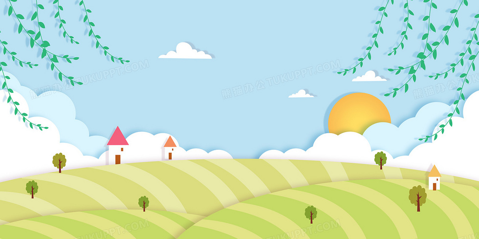 本作品内容为农田房屋小清新剪纸风背景, 格式为 psd, 大小8 MB, 图片尺寸为4724 x 2362, 作品中背景图片无需修改, 源文件无水印,可以直接使用, 欢迎使用熊猫办公。 如认为平台内容涉嫌侵权,可通过邮件:tousu@tukuppt.com提出书面通知,我们将及时处理。