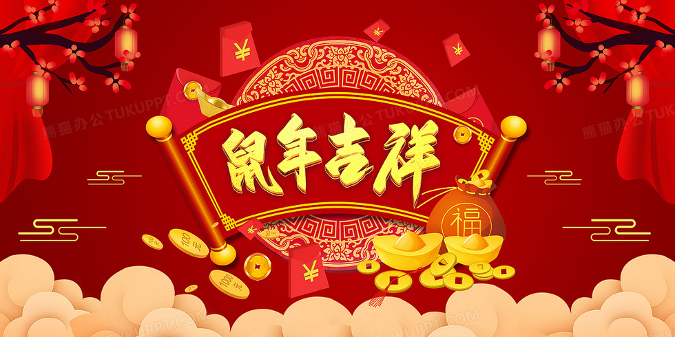 本作品内容为新年红色喜庆背景, 格式为 psd, 大小87 MB, 图片尺寸为9449 x 4724, 作品中背景图片无需修改, 源文件无水印,可以直接使用, 欢迎使用熊猫办公。 如认为平台内容涉嫌侵权,可通过邮件:tousu@tukuppt.com提出书面通知,我们将及时处理。