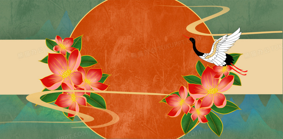 本作品内容为复古中国风仙鹤花朵背景, 格式为 psd, 大小17 MB, 图片尺寸为2560 x 1256, 作品中背景图片无需修改, 源文件无水印,可以直接使用, 欢迎使用熊猫办公。 如认为平台内容涉嫌侵权,可通过邮件:tousu@tukuppt.com提出书面通知,我们将及时处理。