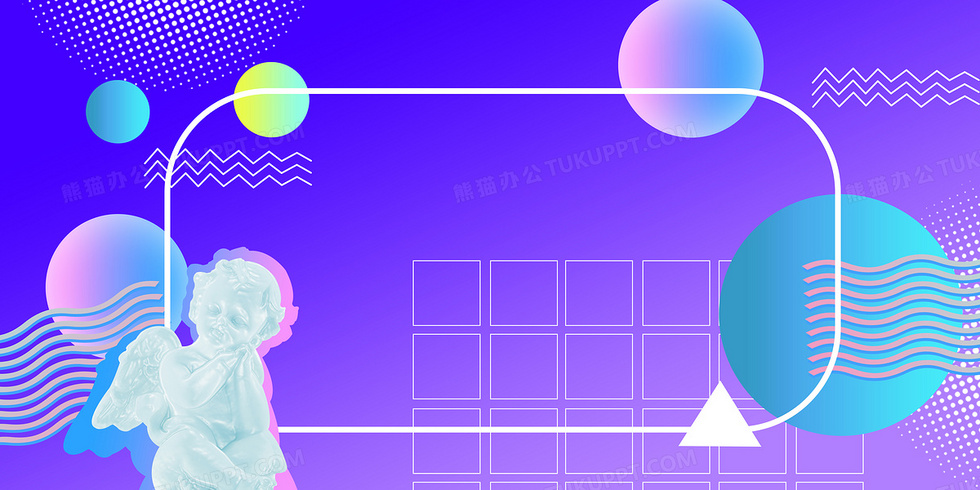 本作品内容为渐变几何蒸汽波天使石膏像背景, 格式为 psd, 大小11 MB, 图片尺寸为4724 x 2362, 作品中背景图片无需修改, 源文件无水印,可以直接使用, 欢迎使用熊猫办公。 如认为平台内容涉嫌侵权,可通过邮件:tousu@tukuppt.com提出书面通知,我们将及时处理。