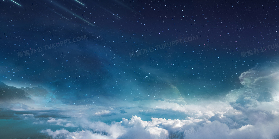 本作品内容为简约浪漫梦幻星空, 格式为 psd, 大小56 MB, 图片尺寸为4724 x 2362, 作品中背景图片无需修改, 源文件无水印,可以直接使用, 欢迎使用熊猫办公。 如认为平台内容涉嫌侵权,可通过邮件:tousu@tukuppt.com提出书面通知,我们将及时处理。