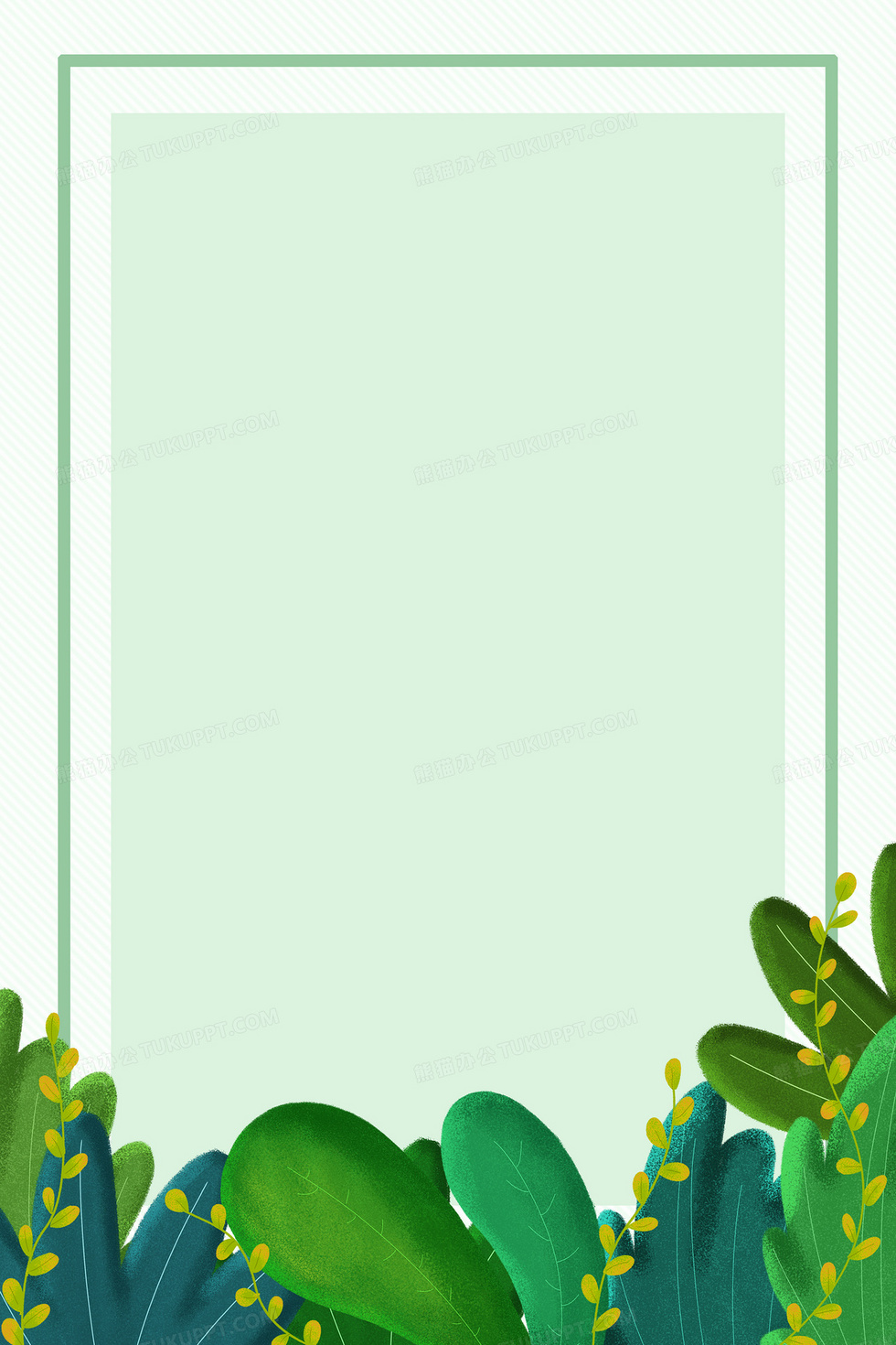 本作品内容为绿色简约小清新植物边框背景, 格式为 psd, 大小25 MB, 图片尺寸为3543 x 5315, 作品中背景图片无需修改, 源文件无水印,可以直接使用, 欢迎使用熊猫办公。 如认为平台内容涉嫌侵权,可通过邮件:tousu@tukuppt.com提出书面通知,我们将及时处理。