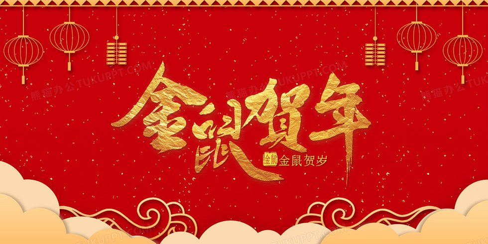 本作品内容为金鼠贺年大气红色喜庆新年贺卡背景, 格式为 psd, 大小29 MB, 图片尺寸为4724 x 2362, 作品中背景图片无需修改, 源文件无水印,可以直接使用, 欢迎使用熊猫办公。 如认为平台内容涉嫌侵权,可通过邮件:tousu@tukuppt.com提出书面通知,我们将及时处理。