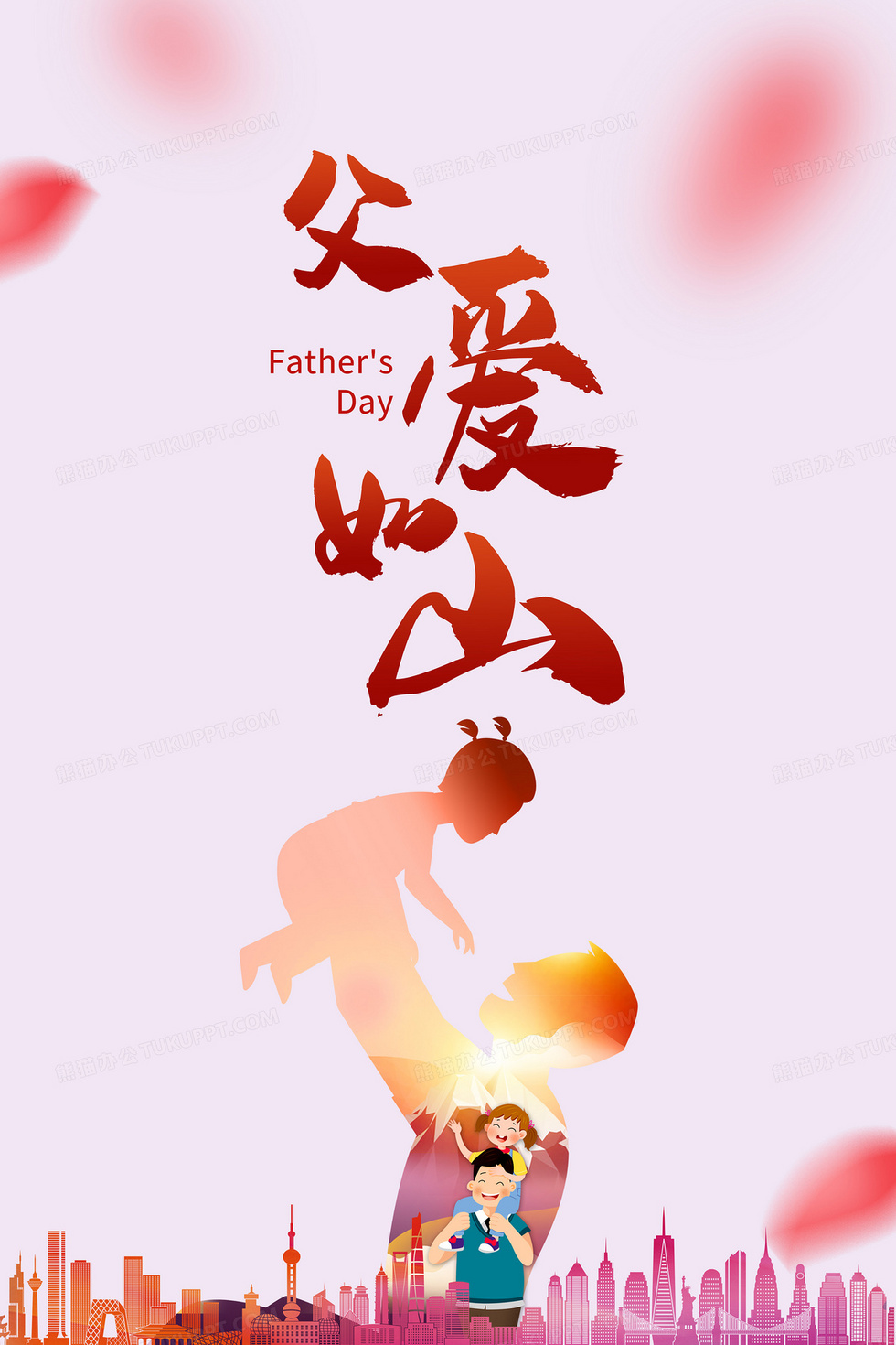 本作品内容为大气清新文艺粉色父亲节海报背景, 格式为 psd, 大小19 MB, 图片尺寸为3543 x 5315, 作品中背景图片无需修改, 源文件无水印,可以直接使用, 欢迎使用熊猫办公。 如认为平台内容涉嫌侵权,可通过邮件:tousu@tukuppt.com提出书面通知,我们将及时处理。