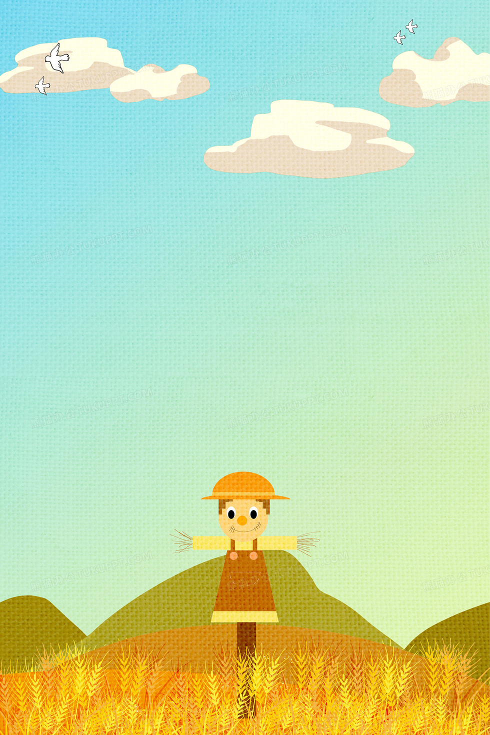 本作品内容为简约卡通芒种稻草人背景图, 格式为 psd, 大小83 MB, 图片尺寸为3543 x 5315, 作品中背景图片无需修改, 源文件无水印,可以直接使用, 欢迎使用熊猫办公。 如认为平台内容涉嫌侵权,可通过邮件:tousu@tukuppt.com提出书面通知,我们将及时处理。