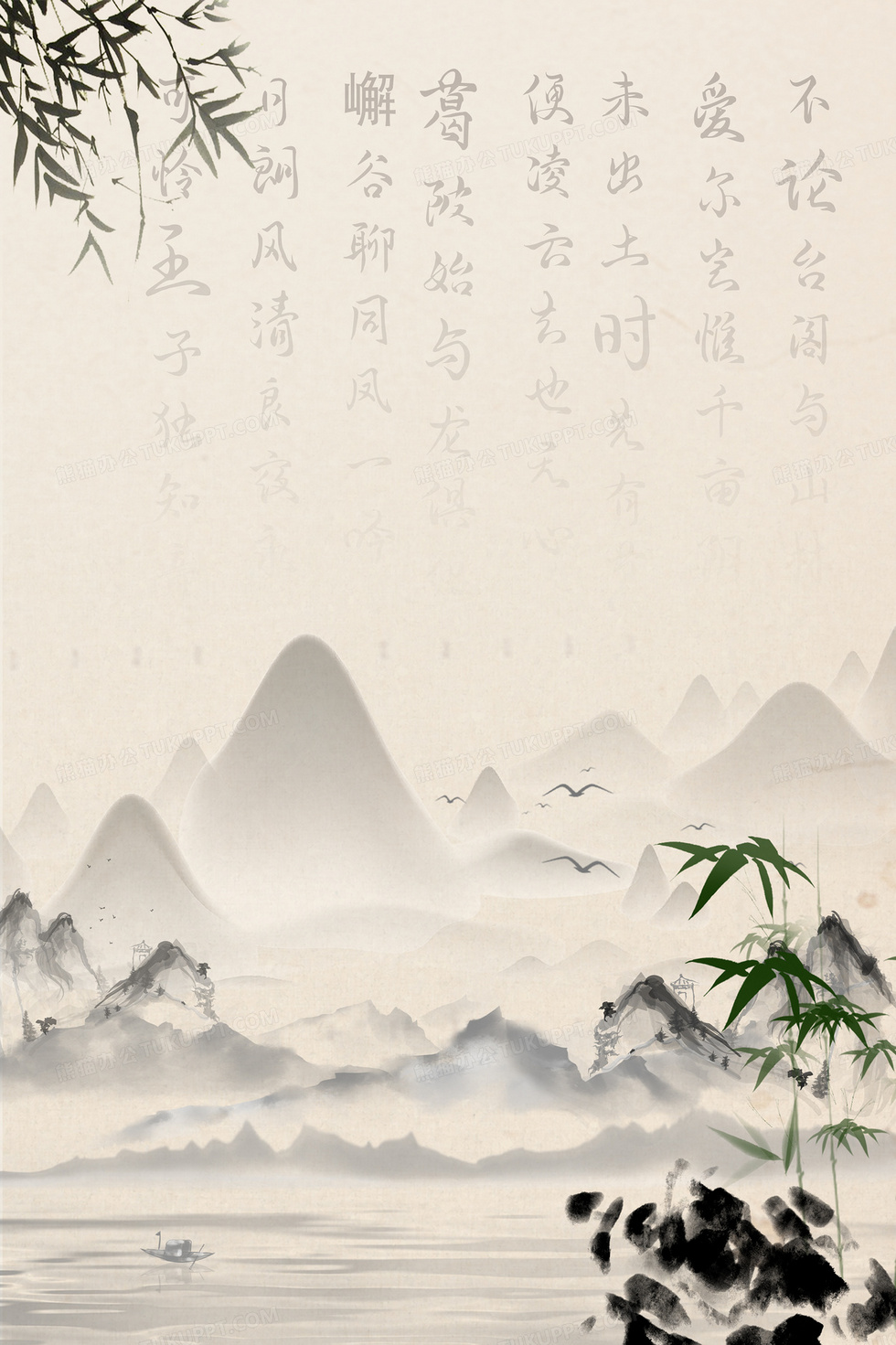 本作品内容为中国风水墨竹子古诗背景之《咏竹》, 格式为 psd, 大小165 MB, 图片尺寸为3543 x 5316, 作品中背景图片无需修改, 源文件无水印,可以直接使用, 欢迎使用熊猫办公。 如认为平台内容涉嫌侵权,可通过邮件:tousu@tukuppt.com提出书面通知,我们将及时处理。