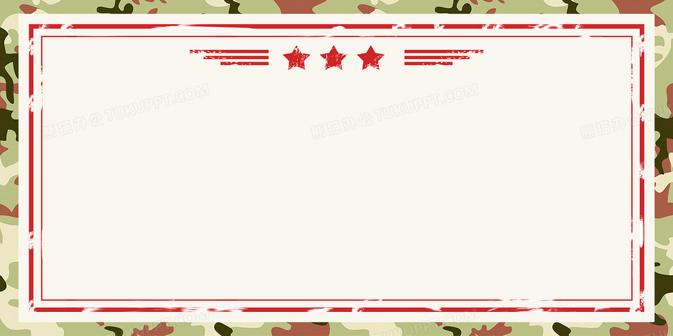 本作品内容为简约军事训练迷彩边框背景, 格式为 psd, 大小9 MB, 图片尺寸为4724 x 2362, 作品中背景图片无需修改, 源文件无水印,可以直接使用, 欢迎使用熊猫办公。 如认为平台内容涉嫌侵权,可通过邮件:tousu@tukuppt.com提出书面通知,我们将及时处理。