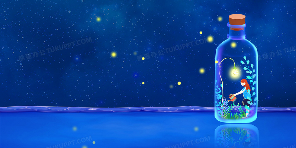 本作品内容为蓝色夜晚小清新漂流瓶背景, 格式为 psd, 大小58 MB, 图片尺寸为4722 x 2361, 作品中背景图片无需修改, 源文件无水印,可以直接使用, 欢迎使用熊猫办公。 如认为平台内容涉嫌侵权,可通过邮件:tousu@tukuppt.com提出书面通知,我们将及时处理。