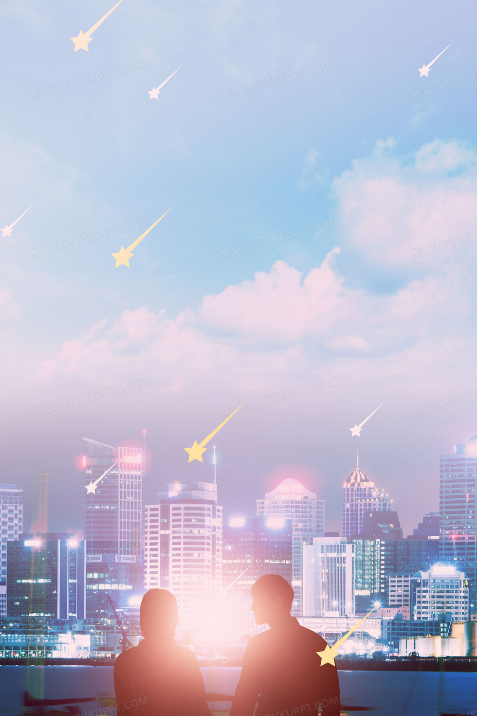 本作品内容为城市夜景浪漫情人节背景, 格式为 psd, 大小76 MB, 图片尺寸为3543 x 5315, 作品中背景图片无需修改, 源文件无水印,可以直接使用, 欢迎使用熊猫办公。 如认为平台内容涉嫌侵权,可通过邮件:tousu@tukuppt.com提出书面通知,我们将及时处理。
