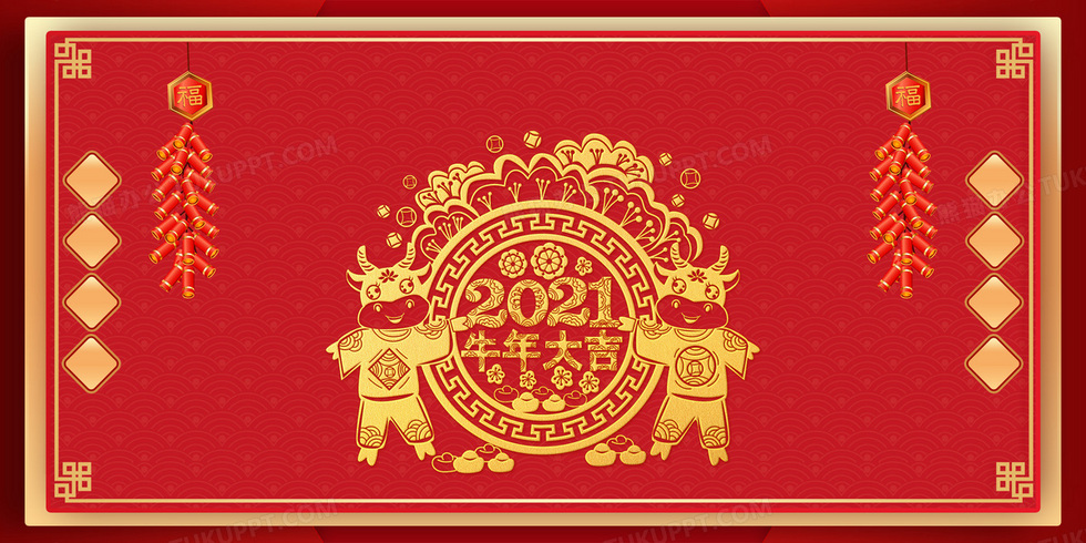本作品内容为创意牛年红色背景, 格式为 psd, 大小14 MB, 图片尺寸为2362 x 1181, 作品中背景图片无需修改, 源文件无水印,可以直接使用, 欢迎使用熊猫办公。 如认为平台内容涉嫌侵权,可通过邮件:tousu@tukuppt.com提出书面通知,我们将及时处理。