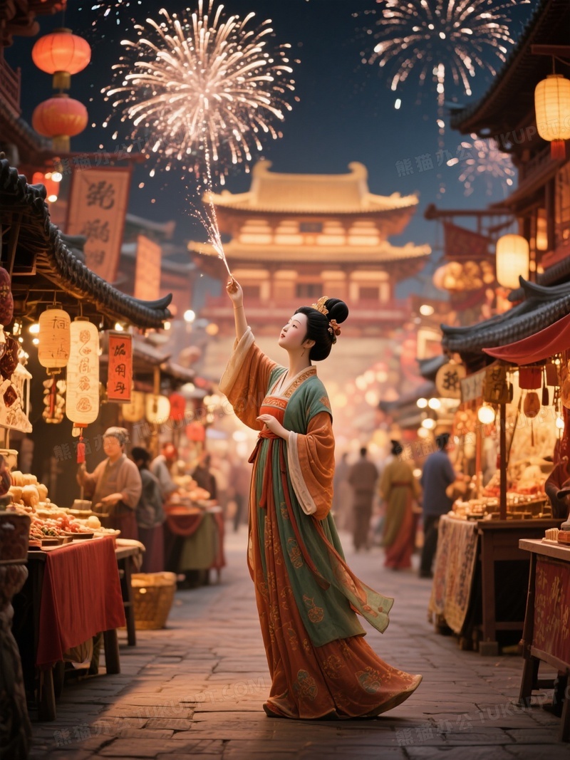 本作品内容为帮我生成一张女唐俑走在大唐盛世的街道上看烟花, 格式为 jpg, 大小1 MB, 图片尺寸为1104 x 1472, 源文件无水印, 欢迎使用熊猫办公。 如认为平台内容涉嫌侵权,可通过邮件:tousu@tukuppt.com提出书面通知,我们将及时处理。