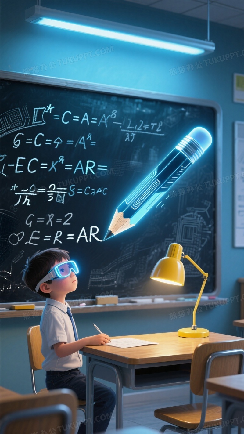 本作品内容为科幻教室概念插画悬浮铅笔自动书写发光方程式, 格式为 jpg, 大小1 MB, 图片尺寸为936 x 1664, 源文件无水印, 欢迎使用熊猫办公。 如认为平台内容涉嫌侵权,可通过邮件:tousu@tukuppt.com提出书面通知,我们将及时处理。