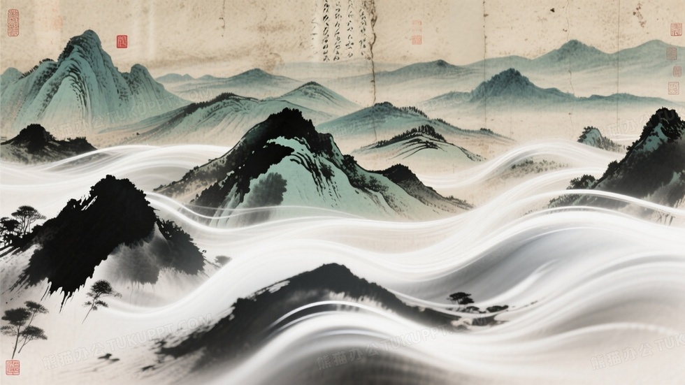 本作品内容为流体水墨动态千里江山, 格式为 jpg, 大小1 MB, 图片尺寸为1664 x 936, 源文件无水印, 欢迎使用熊猫办公。 如认为平台内容涉嫌侵权,可通过邮件:tousu@tukuppt.com提出书面通知,我们将及时处理。