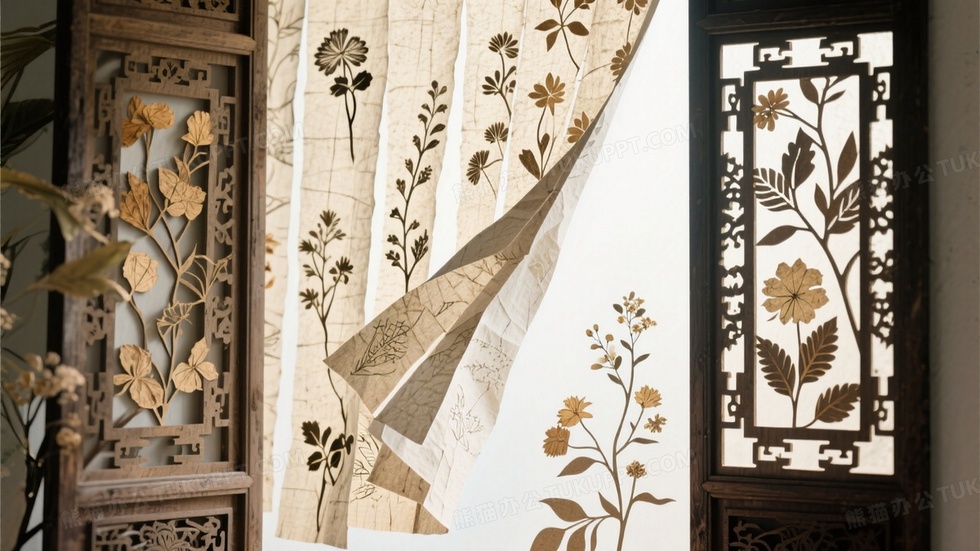 本作品内容为剪纸拼贴插画镂空窗棂贴满风干压花, 格式为 jpg, 大小1 MB, 图片尺寸为1664 x 936, 源文件无水印, 欢迎使用熊猫办公。 如认为平台内容涉嫌侵权,可通过邮件:tousu@tukuppt.com提出书面通知,我们将及时处理。