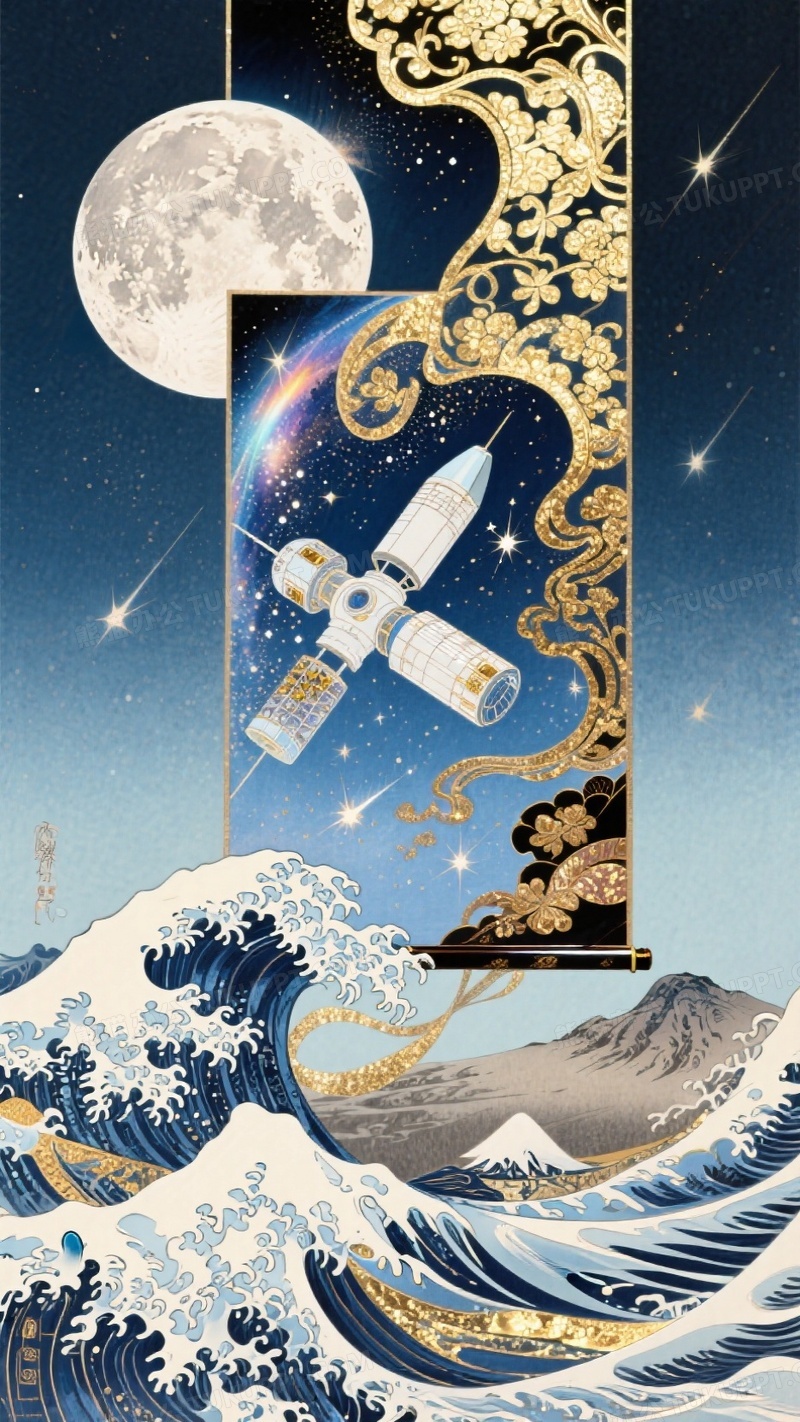 本作品内容为日式浮世绘风格银河绘卷, 格式为 jpg, 大小1 MB, 图片尺寸为936 x 1664, 源文件无水印, 欢迎使用熊猫办公。 如认为平台内容涉嫌侵权,可通过邮件:tousu@tukuppt.com提出书面通知,我们将及时处理。