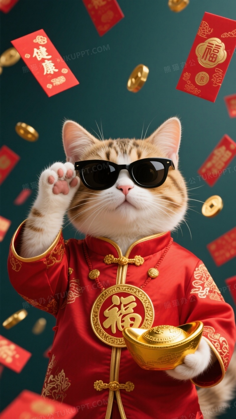 本作品内容为猫咪穿着一件红色的中式上衣, 格式为 jpg, 大小1 MB, 图片尺寸为936 x 1664, 源文件无水印, 欢迎使用熊猫办公。 如认为平台内容涉嫌侵权,可通过邮件:tousu@tukuppt.com提出书面通知,我们将及时处理。