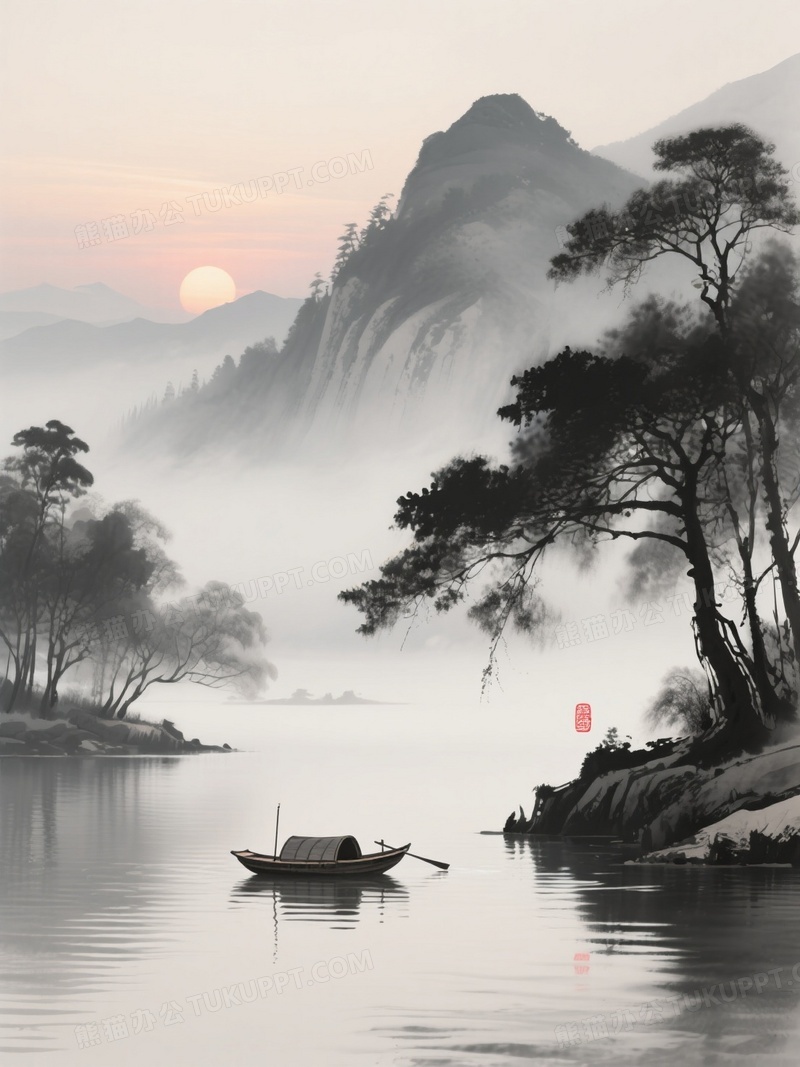 首页 > 插画 > 科技艺术 > 其他 > 水墨丹青山水湖泊树影婆娑