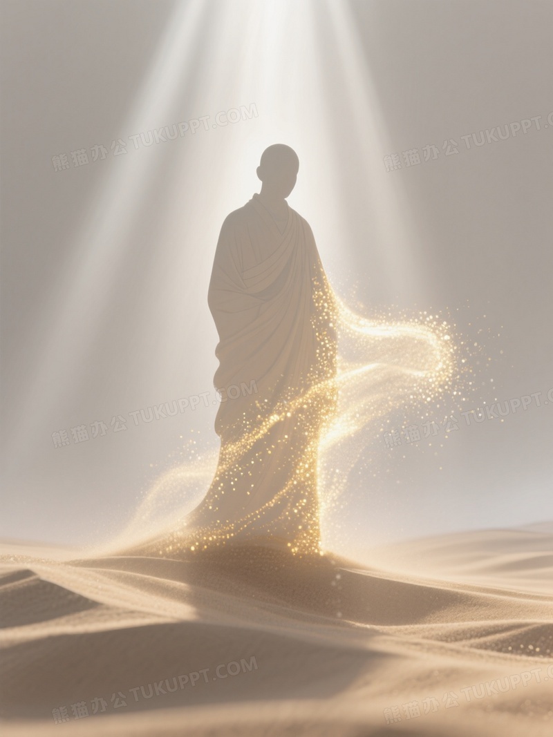 本作品内容为用极细沙化粒子绘制一个僧人轮廓, 格式为 jpg, 大小1 MB, 图片尺寸为1104 x 1472, 源文件无水印, 欢迎使用熊猫办公。 如认为平台内容涉嫌侵权,可通过邮件:tousu@tukuppt.com提出书面通知,我们将及时处理。