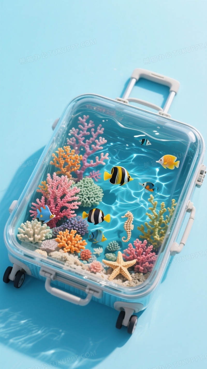 本作品内容为透明玻璃行李箱内微缩一个海底珊瑚礁生态系统, 格式为 jpg, 大小1 MB, 图片尺寸为936 x 1664, 源文件无水印, 欢迎使用熊猫办公。 如认为平台内容涉嫌侵权,可通过邮件:tousu@tukuppt.com提出书面通知,我们将及时处理。