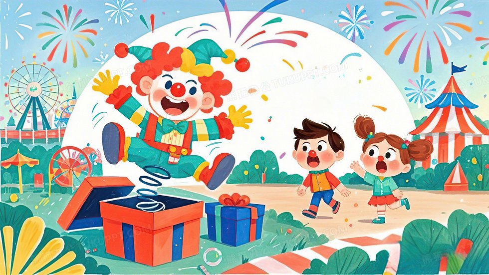 本作品内容为小丑从装有弹簧的礼盒蹦出来吓小朋友愚人节插画, 格式为 jpg, 大小9 MB, 图片尺寸为3072 x 1728, 源文件无水印, 欢迎使用熊猫办公。 如认为平台内容涉嫌侵权,可通过邮件:tousu@tukuppt.com提出书面通知,我们将及时处理。